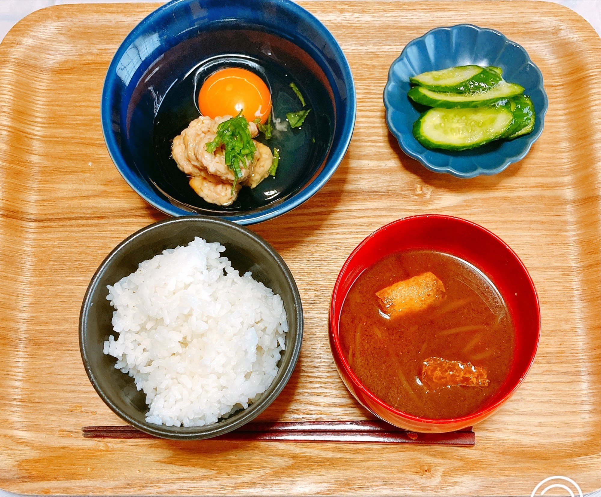 別の日の朝食はキュウリを浅漬けの素で漬けて