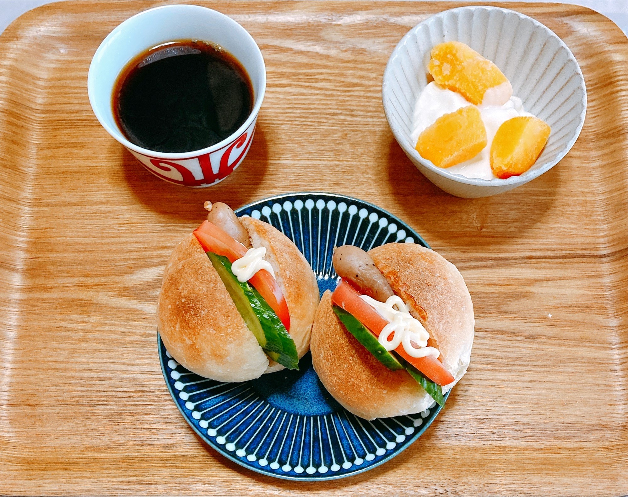 パンにトマトとキュウリを挟んでサンドイッチ。
