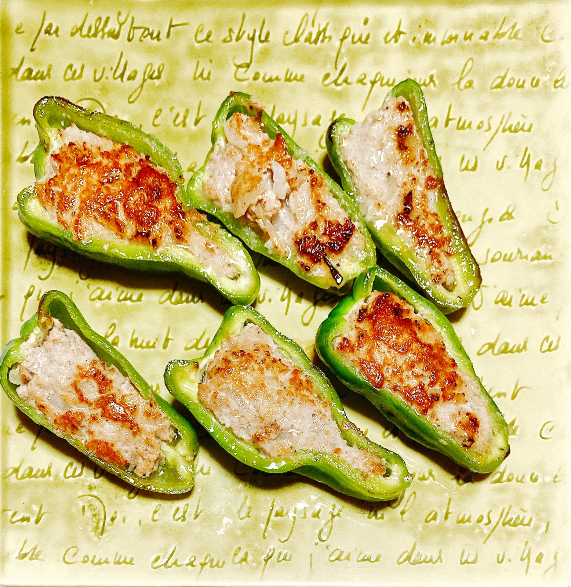 ピーマンと玉ねぎを使ったピーマンの肉詰め。